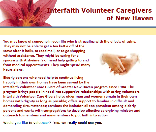 Volunteers are always needed to help out with various tasks in our Cheshire, Glastonbury, Hartford, Southbury, Waterbury and Windsor Locks offices. You can work with any of our departments on a variety of projects including special events all at your own convenience. This is an excellent opportunity for retirees who want to remain active in the community.